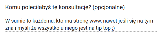 Nie, to wcale nie dziwne. I nie jesteś w tym sama. Większość osób oferujących usługi jest zbyt blisko swojego procesu, żeby dostrzec pewne bariery / niejasności. Dlatego powstała ta konsultacja, żebyś mogła zobaczyć, co wymaga uproszczenia.